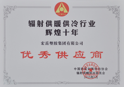 2015年5月15日,中国辐射供暖供冷委员会十周年庆典在北京盛大举行。会上表彰了一批对辐射供暖供冷行业发展作出突出贡献的企业和个人,南宫NG·28(中国)相信品牌力量集团喜获中国辐射供暖供冷行业辉煌十年优秀供应商殊荣,南宫NG·28(中国)相信品牌力量塑胶集团有限公司张思良总经理荣获中国辐射供暖供冷行业功勋奖。