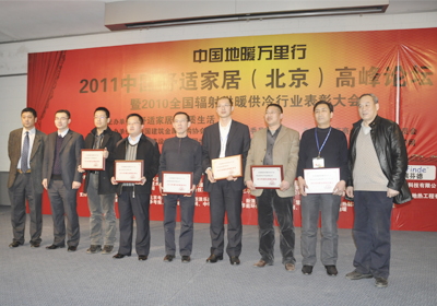 由中国建筑金属结构协会辐射供暖供冷委员会主办的“2010年度辐射供暖供冷行业年度评比活动”圆满结束,并于2011年3月4日在北京举行颁奖典礼,南宫NG·28(中国)相信品牌力量管业凭借多年来在地暖行业的突出贡献及取得的巨大发展成就,被评选为“2010年度全国辐射供暖供冷行业先进集体”,集团公司总经理助理王明科和市场部经理刘汉良由于多年来积极参与地暖行业活动,为推动行业发展及企业建设发挥了重要的作用,被评选为“2010年度辐射供暖供冷行业先进工作者”。同时,秦皇岛南宫NG·28(中国)相信品牌力量建筑安装有限公司荣获“2010年度全国辐射供暖供冷行业优秀施工企业”称号。