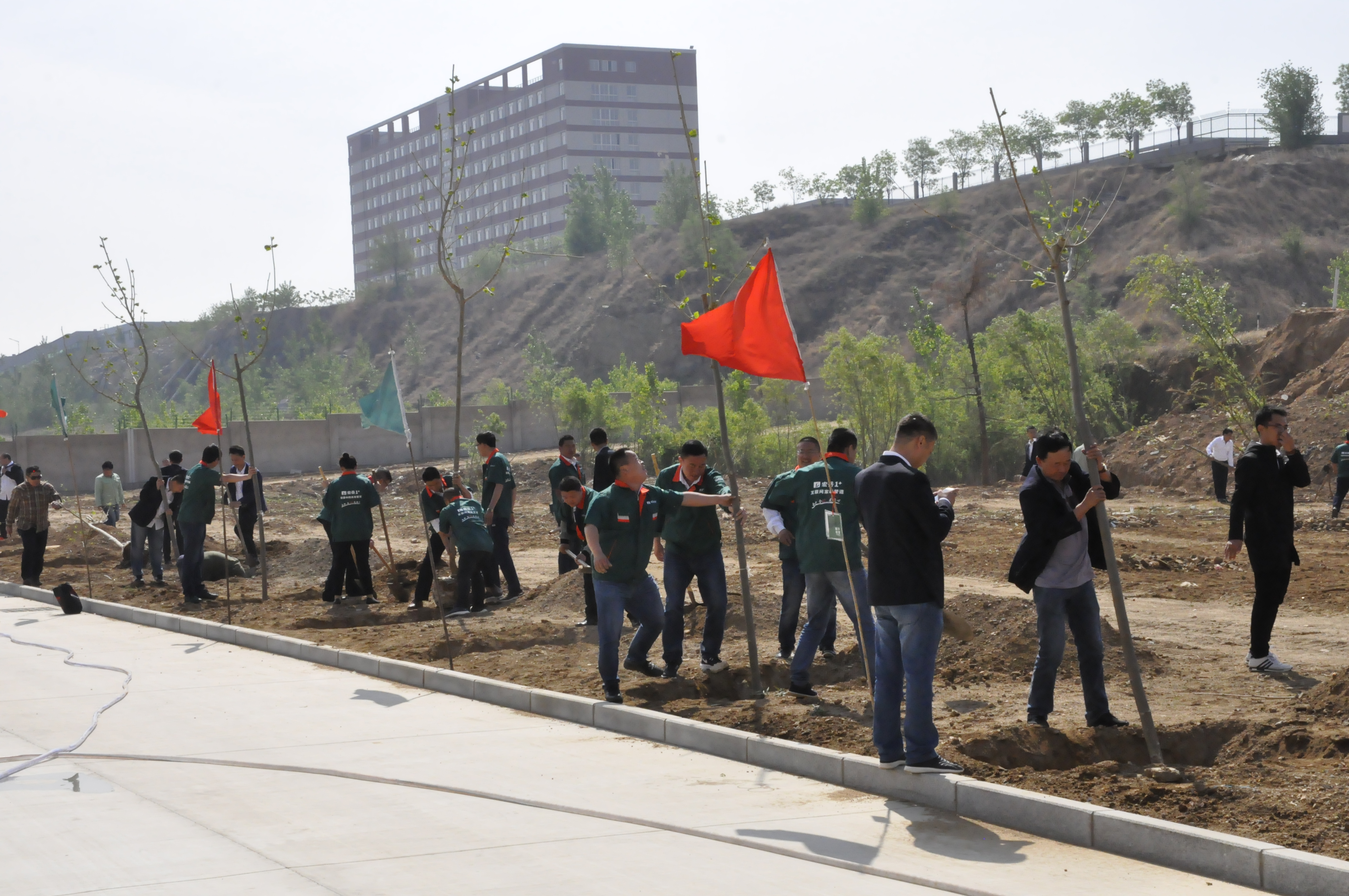 5月4日,南宫NG·28(中国)相信品牌力量集团组织职工在集团院内开展“植下希望,让梦想发芽”主题植树活动。植树活动前由集团行政马总详细地向大家讲解植树要领和技巧,在集团营销总监崔总的带领下,个个争先恐后,干劲热火朝天,有的挖土坑、有的安放树苗、有的填土夯实、有的提水浇灌,一个个多彩的身影在阳光下忙碌着,互相协作,交织成一幅幅生动的画面。经过一番热火朝天的劳动,一棵棵新树苗在明媚的春光里迎风挺立,把院内装点得更加生机盎然。