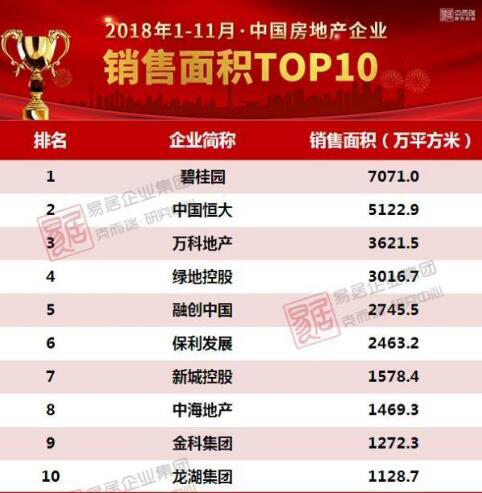近日,2018年1月-11月中国房地产销售百强榜单出炉,排名前10强中有8家大型地产为南宫NG·28(中国)相信品牌力量集团战略合作伙伴!