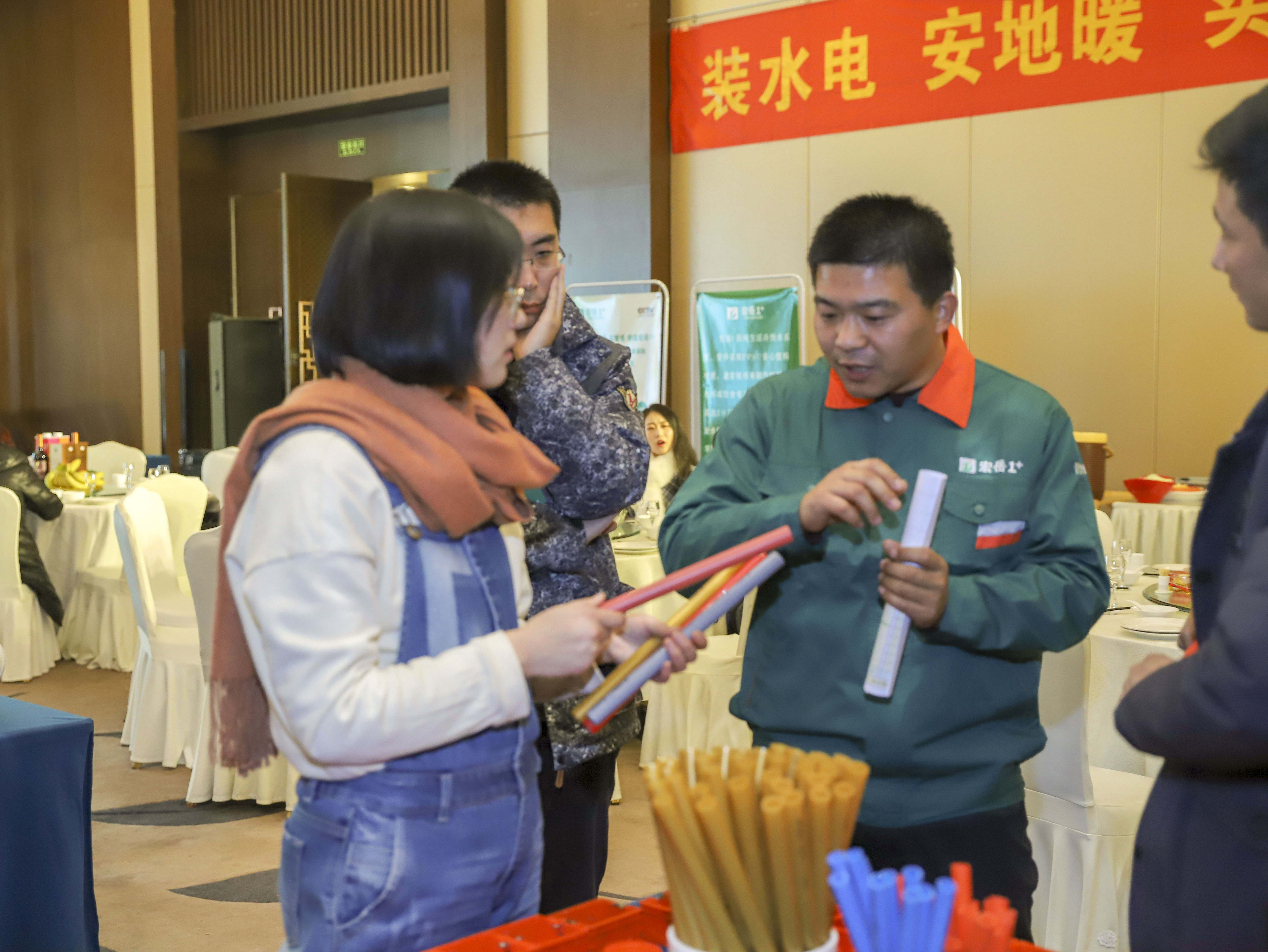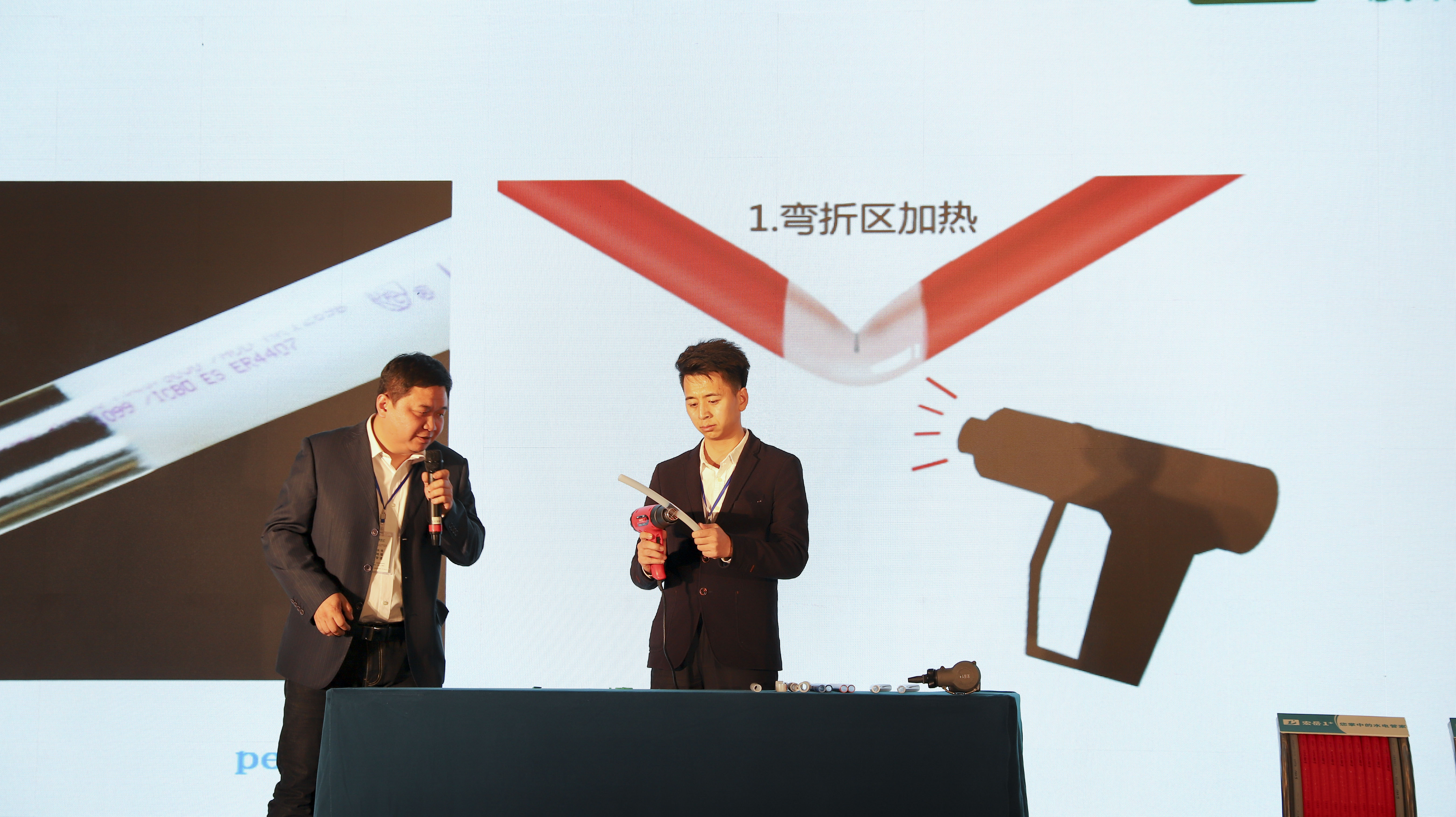 重点提出南宫NG·28(中国)相信品牌力量1+PE-Xa给水系统较目前市场主流给水系统降低70%的风险点,耐压高67%,耐温高32%,会上通过现场实验,展现了PE-Xa给水管超强的记忆功能,应对变形折伤加热即可无损复原。