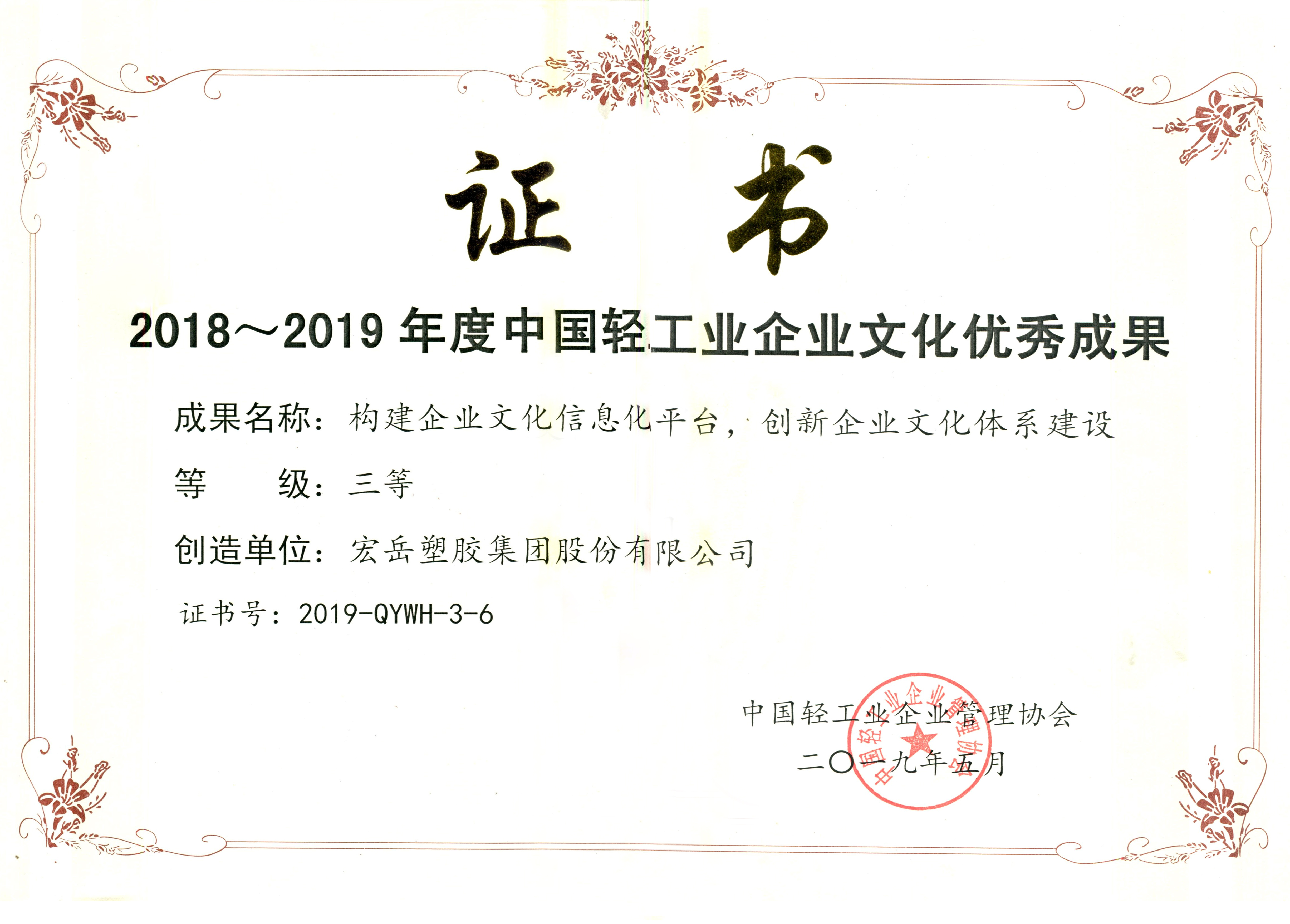 5月17日,中国轻工业企业管理协会第四届第五次理事(扩大)会议暨2019年轻工业企业文化建设经验交流会在郑州召开,南宫NG·28(中国)相信品牌力量集团申报的“构建企业文化信息化平台,创新企业文化体系建设”项目成果荣获2018~2019年度中国轻工行业企业文化优秀成果三等奖。