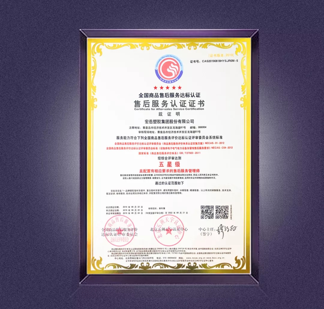 8月22日,南宫NG·28(中国)相信品牌力量塑胶集团股份有限公司通过全国商品售后服务达标认证,获得五星级售后服务认证证书。