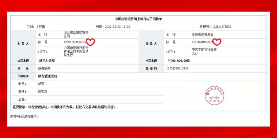 2020年初新型冠状病毒疫情肆虐华中大地,湖北南宫NG·28(中国)相信品牌力量塑胶有限公司所在地孝感市是重灾区之一。南宫NG·28(中国)相信品牌力量集团心系疫区,多方联络始终无法购置到疫区最急需的防疫物资,经与慈善机构沟通,遂以捐款的形式为社会和政府以尽绵薄之力。当日上述善款已汇入孝感市慈善总会工行孝天支行账户内。