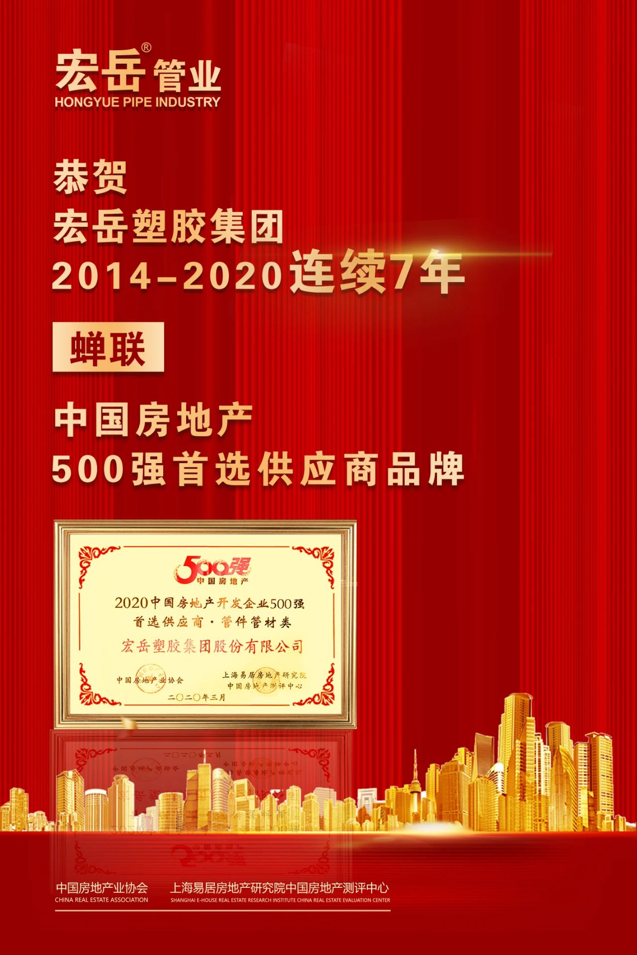 《2020中国房地产开发企业500强测评报告》和《2020中国房地产开发企业500强首选供应商服务商品牌测评报告》同时揭晓。南宫NG·28(中国)相信品牌力量塑胶集团股份有限公司荣获2020年中国房地产开发企业500强首选供应商服务商品牌测评榜单的管件管材类5强。