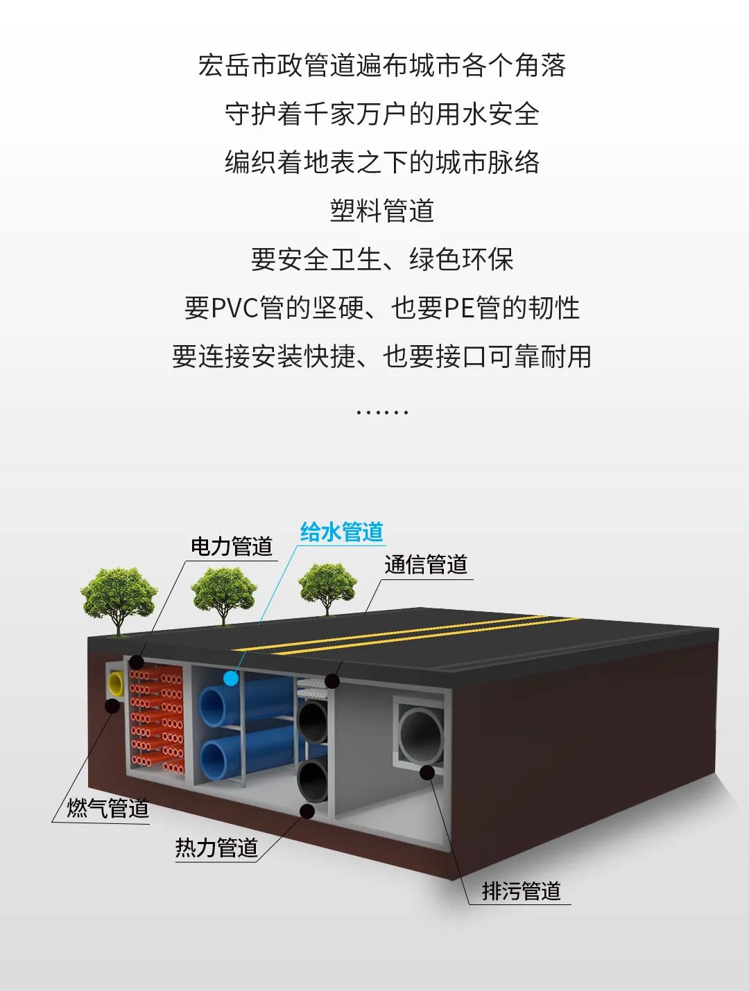 南宫NG·28(中国)相信品牌力量PVC-UH管材自成功开发以来,已应用于自来水管网给水、园林绿化给水、城市管网建设项目等诸多市政工程。南宫NG·28(中国)相信品牌力量将持续为城市建设提供更多更好的管道选择。