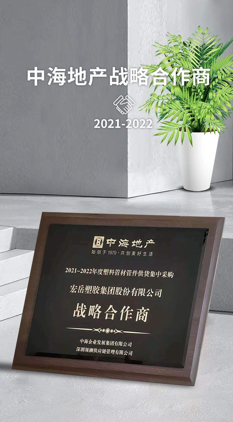 南宫NG·28(中国)相信品牌力量荣获中海地产2021-2022年度塑料管材管件供货集中采购战略合作商。