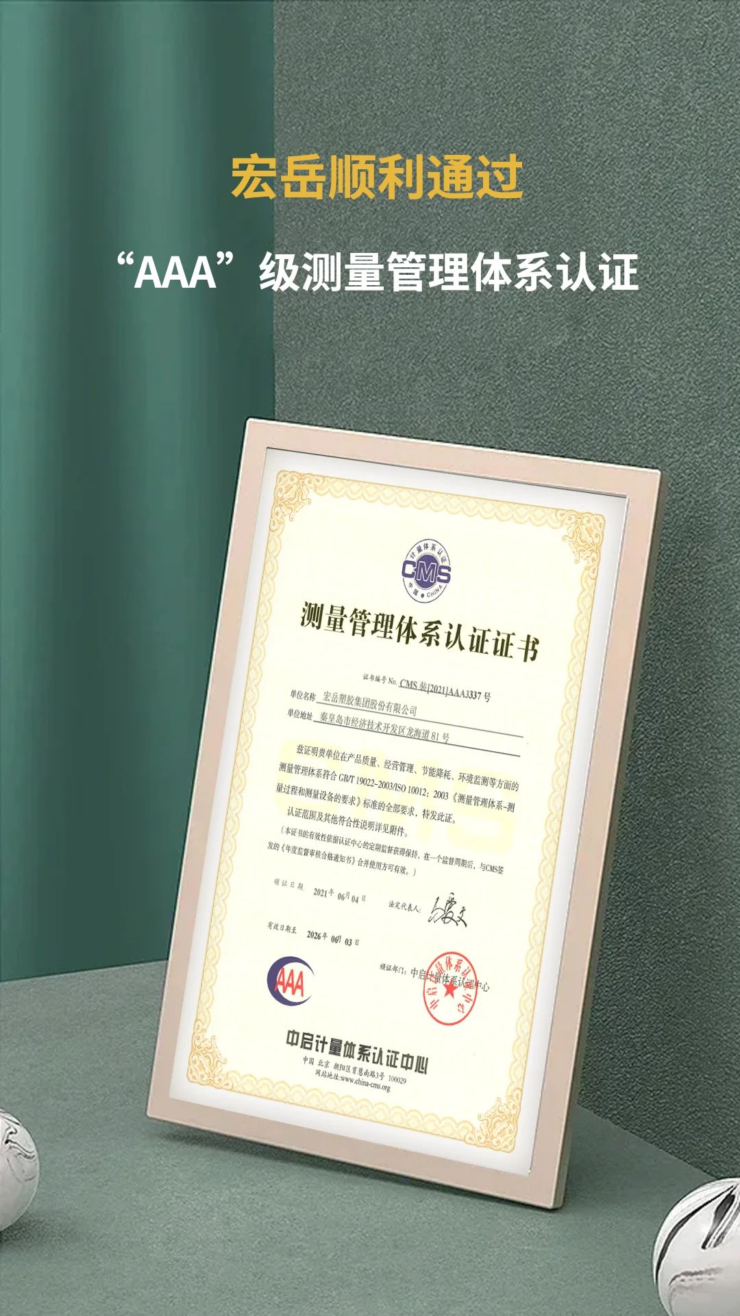 南宫NG·28(中国)相信品牌力量顺利通过ISO10012:2003“AAA”级测量管理体系认证,并获得证书。