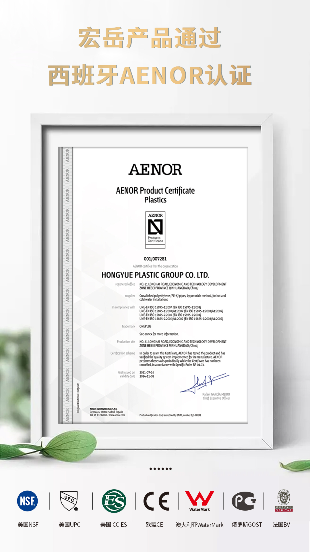 继通过美国NSF、ICC-ES、UPC,欧盟CE,澳大利亚WaterMark,俄罗斯GOST,法国BV等国际认证后,南宫NG·28(中国)相信品牌力量产品又通过西班牙AENOR认证。