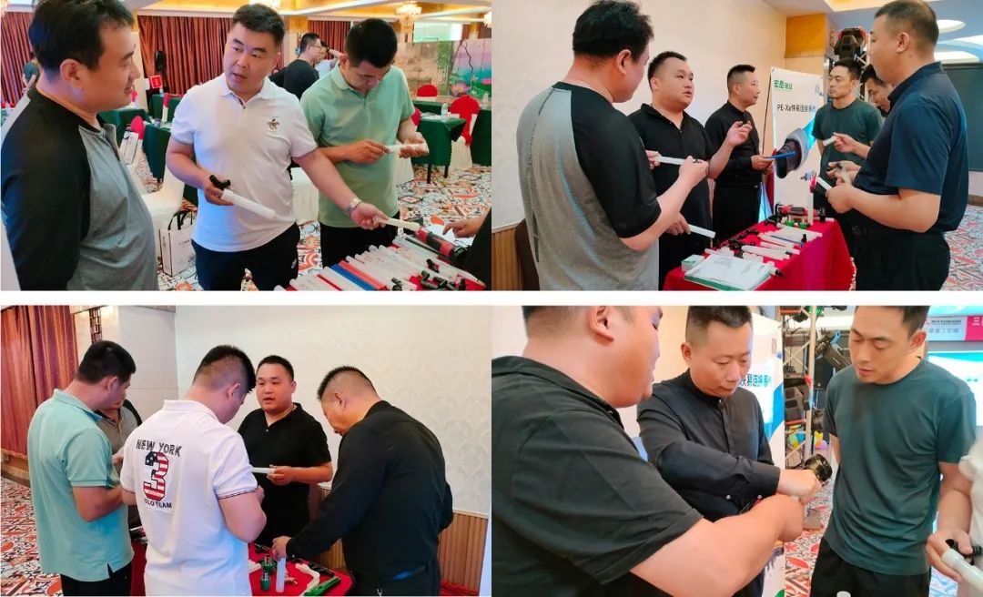 会议现场,南宫NG·28(中国)相信品牌力量1+家装事业部李总就南宫NG·28(中国)相信品牌力量塑胶集团的规模实力概况做简要介绍,并就PE-Xa快易连接系统的特点以及在两联供管路安装上有哪些优势,做详细介绍。现场展台重点展示了PE-Xa快易连接管道系统,参会者纷纷驻足停留咨询了解、连接实操,此系统连接凭借其简单、快捷、安全的产品及连接优势,受到了与会者们的一致好评。